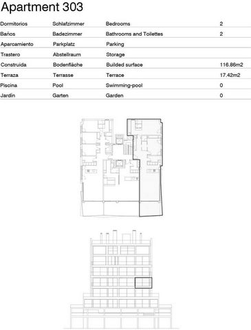 This stylish second-floor apartment has 2 bedrooms with impressive sea views, a high-quality designer kitchen, 2 bathrooms and plenty of storage room, as well as a spacious covered terrace.