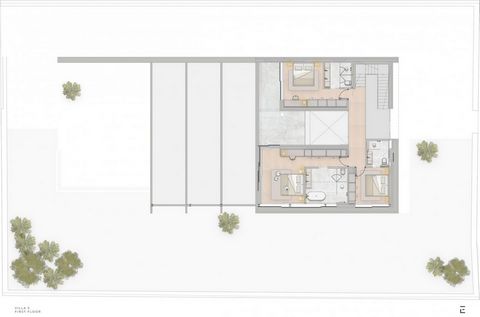 The first floor, which is also accessible via an exterior staircase, comprises three more double bedrooms and bathrooms. Two of these faces the atrium, ensuring plenty of light, and also have access to a shared terrace with views of the countryside.