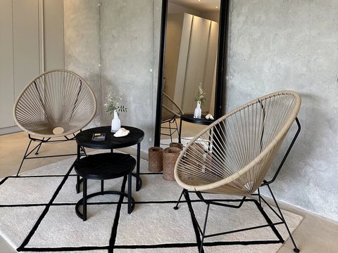 The interior layout has been meticulously thought out to offer a functional and comfortable space. With three spacious bedrooms, each with its own private bathroom, the villa provides an intimate and pleasurable environment for its residents. The master suite creates a dreamy environment for relaxing and enjoying privacy. The common areas are not far behind. The living room and dining room intertwine seamlessly, creating a cosy and spacious space to share moments with family or friends. In addition, the kitchen, modern in design and equipped with the latest amenities, is the perfect place to unleash your culinary creativity.