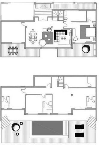 On the lower floor, two double bedrooms with en-suite bathrooms, a study, a private gym (convertible into an additional bedroom), a guest bathroom, laundry, and staff quarters all open onto a continuous terrace leading to the wooden-decked pool and solarium, perfect for sunbathing, relaxing, or entertaining friends. A garage for two vehicles completes this level, adding practical convenience.
