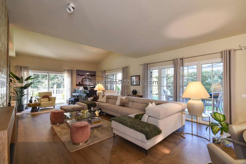 El exterior es, sin duda, uno de los grandes protagonistas de esta casa:un jardín cuidado al detalle, amplias zonas verdes, una gran piscina privada perfectamente integrada y una espectacular zona de porche–chill out equipada con cocina exterior, barbacoa, horno de leña y espacio de comedor, pensada para disfrutarla durante todo el año con absoluta privacidad.