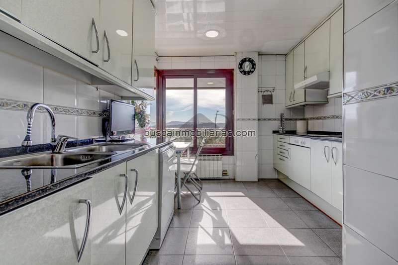 La zona de día ofrece un salón-comedor espacioso y muy luminoso, con salida directa al balcón, y una gran cocina independiente con amplio ventanal. Es una cocina pensada para vivirla: con espacio para mesa y sillas, perfecta para el día a día, y además con zona de agua independiente.