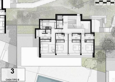 El acceso al recinto es un paseo entre árboles y vegetación mediterránea de bajo mantenimiento, que conduce a una calle subterránea con garajes privados para cuatro vehículos, combinando exclusividad y comodidad sin renunciar a la elegancia. En la planta inferior, los garajes ofrecen la posibilidad de crear un gimnasio privado, sala de ocio o espacio polivalente según tu estilo de vida.