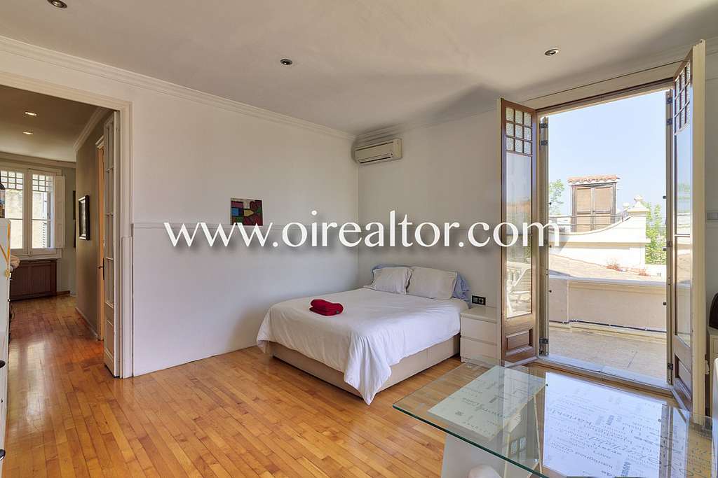 Accedemos a la planta superior a través de unas escaleras y llegamos a un bonito pasillo donde hay un baño espectacular cuyo diseño ha sido retratado para revistas de interiorismo. La distribución cuenta con una escalinata accesoria que conduce a una preciosa habitación en suite con acceso a la terraza superior, donde se ve la claraboya del comedor. El mismo pasillo conduce a otra habitación doble con terraza, que tiene una escalera des de la que se puede acceder al jardín. Hay otra habitación individual, cuya terraza es el propio tejado del inmueble, con maravillosas vistas a la montaña y al jardín.