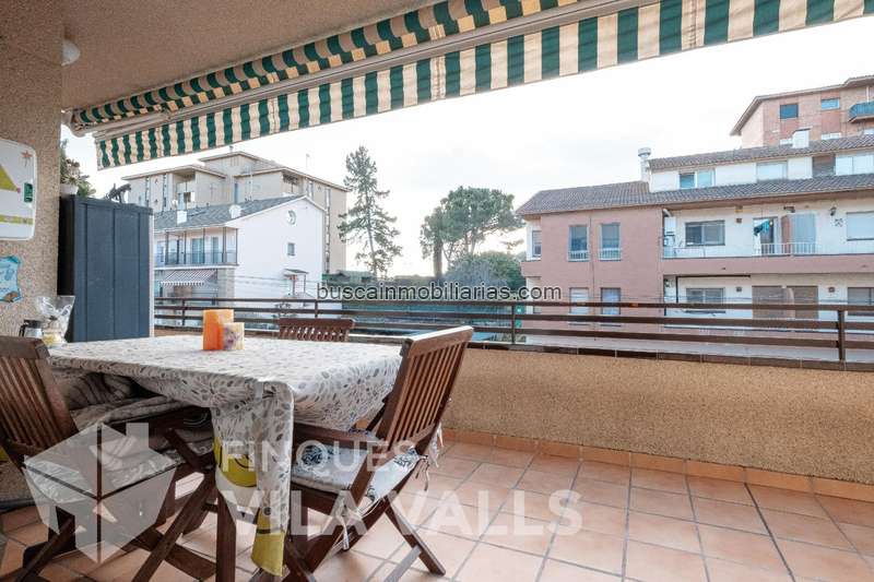 Piso semi nuevo, con gran terraza de 50 m2 y jardín con piscina, tenis y parque infantil comunitarios, a 35 minutos de Barcelona.