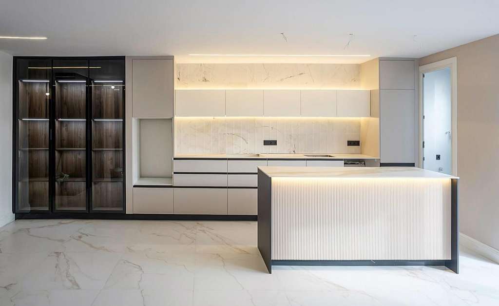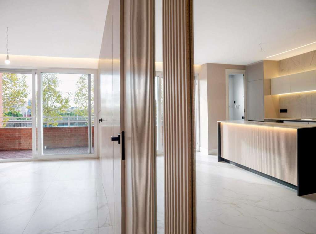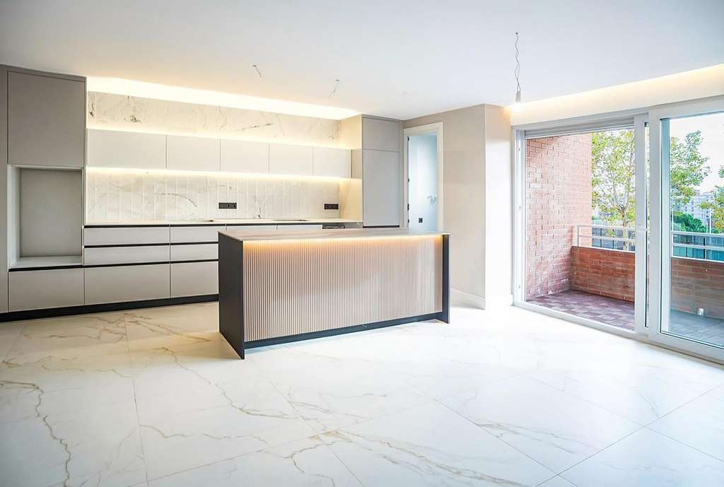 La cocina, tipo office y abierta al salón, es perfecta para aquellos que disfrutan de la vida en familia y con amigos. El piso cuenta con tres dormitorios dobles, todos exteriores, y el dormitorio principal es en suite, con un baño completo.