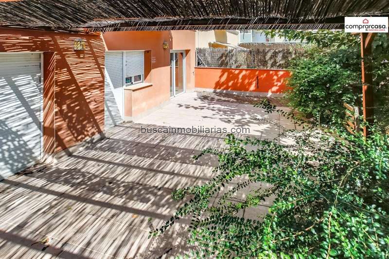 -SALÓN COMEDOR de unos 25 m2, con grandes puertas de aluminio que permiten la entrada de luz natural con SALIDA a un JARDÍN de aproximadamente 50 m2, parcialmente pavimentado y con zona ajardinada. Este espacio es comunitario de USO PRIVATIVO