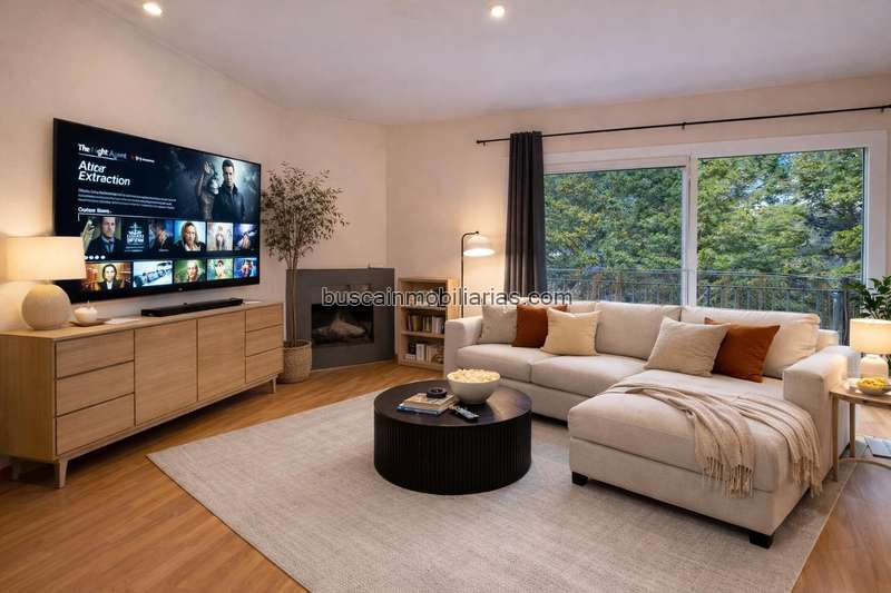 La vivienda cuenta con un amplio y luminoso salón-comedor, que destaca por su chimenea, perfecta para crear un ambiente cálido y acogedor en los meses más fríos. Desde esta estancia se accede a un agradable balcón con espectaculares vistas, ideal para disfrutar del aire libre y la naturaleza.