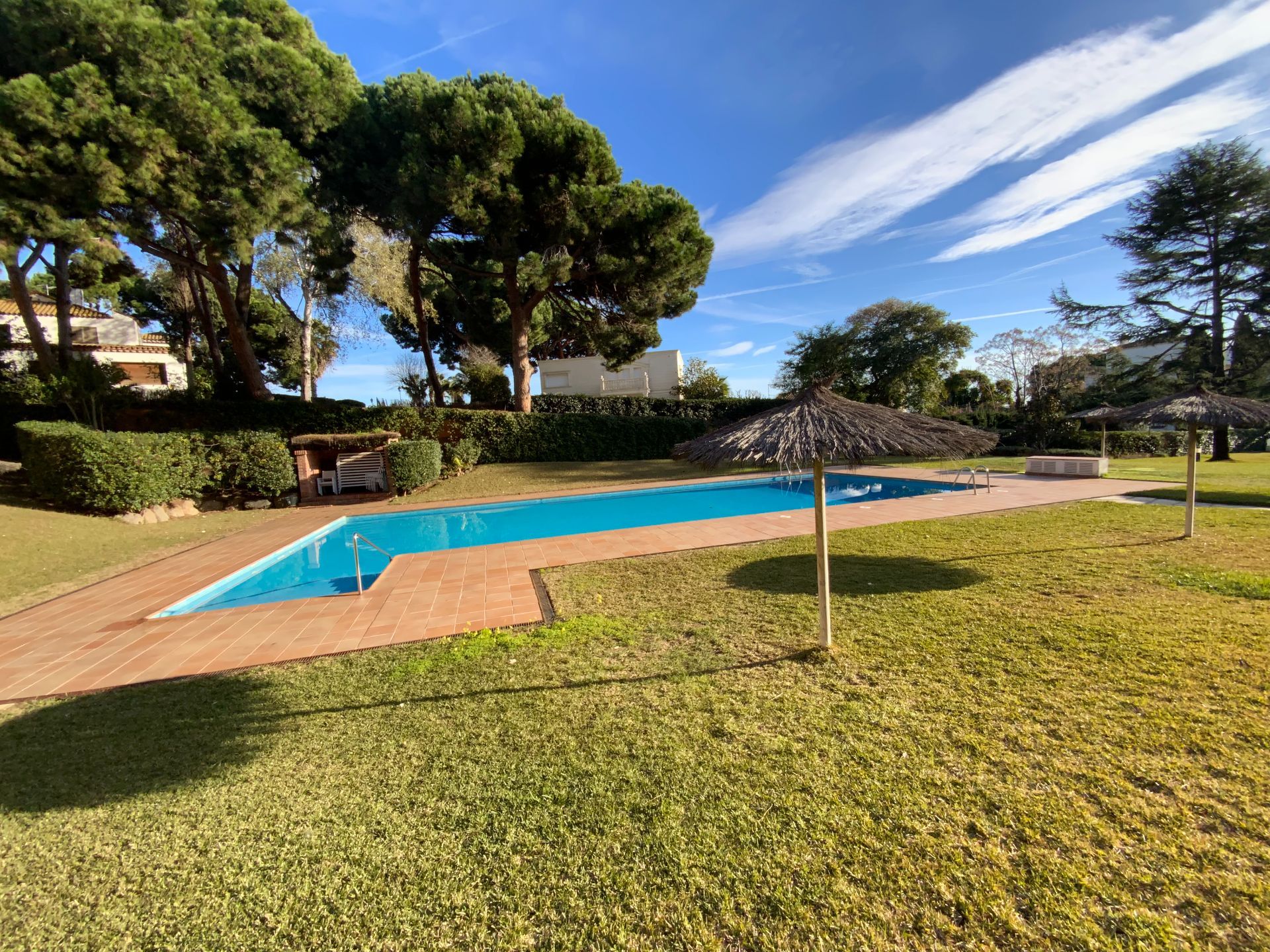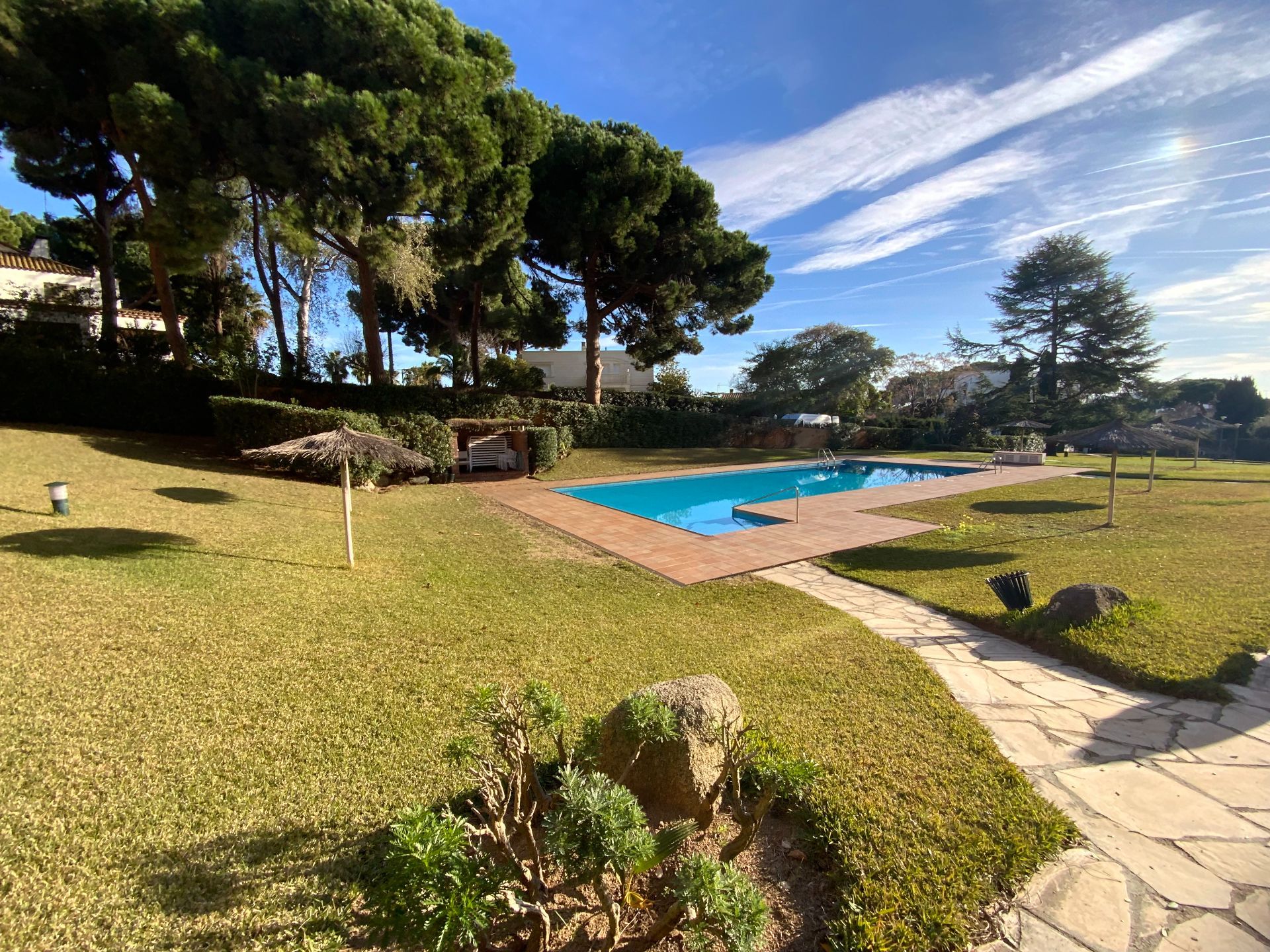 Preciosa zona de piscina y jardines, zona de aparcamiento en el exterior. Recinto privado al que se accede por dos cómodas entradas. Servicio de portería.