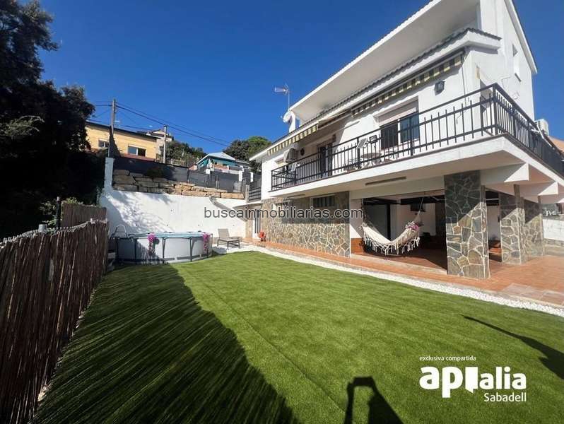 PERITAX INMOBILIARIA comercializa encantadora vivienda a 4 vientos en la Urbanización de Can Canyameres - Sentmenat.Esta singular y luminosa vivienda aislada consta de 238 m2 construidos y está edificada sobre una parcela de más de 1000 m2, situada en un entorno tranquilo y residencial, lejos del bullicio del centro del pueblo, ideal para familias que buscan tranquilidad y naturaleza.La vivienda se distribuye en varias plantas:Planta baja: desde la rampa de entrada accedemos al recibidor mediante puerta blindada y encontramos una cocina independiente totalmente equipada, amplio salón-comedor cantonero con chimenea y salida a un balcón con bonitas vistas al jardín y a la montaña. Desde el salón accedemos a la zona de habitaciones, donde dispone de una habitación doble con armario empotrado, un baño y una habitación individual.Planta primera: desde el recibidor de la vivienda y mediante escalera, subimos a un bonito y práctico estudio con grandes ventanales que dotan la estancia de luz natural ideal para trabajo desde casa, un bonito solarium, una habitación doble con vistas a la montaña y un baño con ducha.Planta semi-sótano: también desde el recibidor de la vivienda y mediante escalera, bajamos a la planta inferior, donde encontramos un lavadero, la salda de máquinas, el garaje, también dotado de puerta blindada, actualmente acondicionado como sala multiusos, una habitación y un bonito porche ideal para el ocio familiar con vistas al espacioso jardín donde está instalada la piscina. El jardín goza de unas bonitas vistas a la montaña.Y en un nivel inferior de la parcela, mediante escalera de acceso, encontramos un pequeño porche adicional, acondicionado con una zona de barbacoa y encimera y un aseo ideal para disfrutar de momentos de ocio y celebraciones al aire libre.La vivienda está dotada de calefacción de gasoil y aire acondicionado.La zona de Can Canyameres a medio camino entre Sentmenat y Sabadell, es conocida por sus amplios terrenos y la proximidad a la naturaleza con un ambiente sereno y saludable. La ubicación de la finca ofrece vistas despejadas a la montaña y los alrededores, con la sensación de vivir en plena naturaleza.¡Si buscas un lugar donde crear tu nuevo hogar esta es tu vivienda!