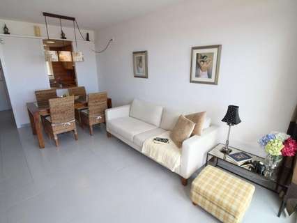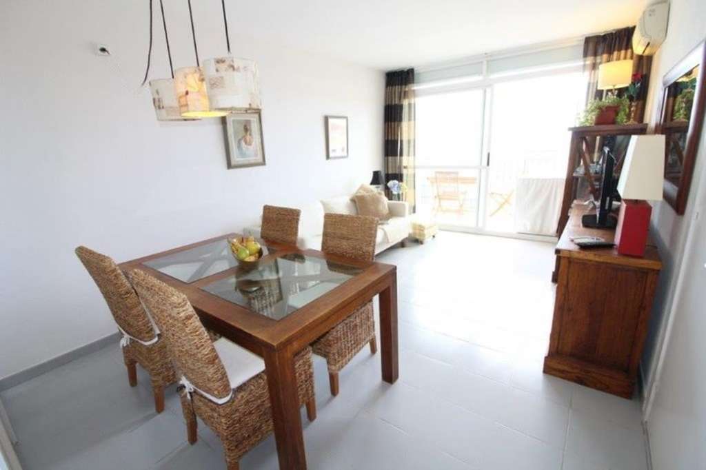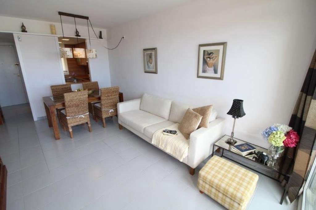 Apartamento con vista directa al mar. Zona de acceso totalmente Privado para vehiculos, piscina comunitaria, gran jardin, 2 pistas de tenis, zona de columpios para niños…Acceso directo a la playa desde escaleras (50 metros) o en ascensor de un modo u otro son 2 minutos del apartamento hasta la orilla del mar.La vivienda consta de : Comedor- sala de estar con 2 grandes puertas de cristal correderas que dan al mar, muy luminoso todo el dia, sol desde el amanecer a la puesta de sol. Pues aunque el edificio es en segunda linea, pasa por encima del de enfrente y por ello las vistas directas al mar.Cocina americana separada ( pero con ventana pasaplatos al comedor) totalmente equipada.Acceso al Balcon desde la sala de estar, apto para una mesa de 4 plazas o sofa, con vista al mar.