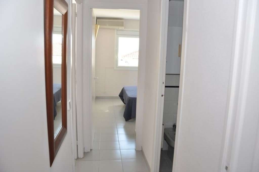 Habitación principal de matrimonio con ventana a lado mar y armario empotrado y habitación secundaria para literas ó cama matrimonio con ventana lado jardin-piscina.Baño completo.Calefacción y Aire Acondicionado.Se vende totalmente amueblado y equipado de electrodomesticos si se prefiere..A 200 metros del Port de Aiguadolç, y con la playa a pie de edificio la ubicación es inmejorable.
