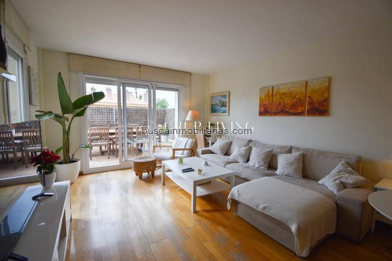 Su acceso por la planta baja con amplio recibidor, dos habitaciones dobles con acceso a terraza de 25 m2, suite con baño completo y bañera, otro Baño completo con bañera, cocina abierta al comedor y terraza de 23 m2 a nivel del comedor, con orientación sur y acceso a la zona ajardinada con piscina comunitaria.
