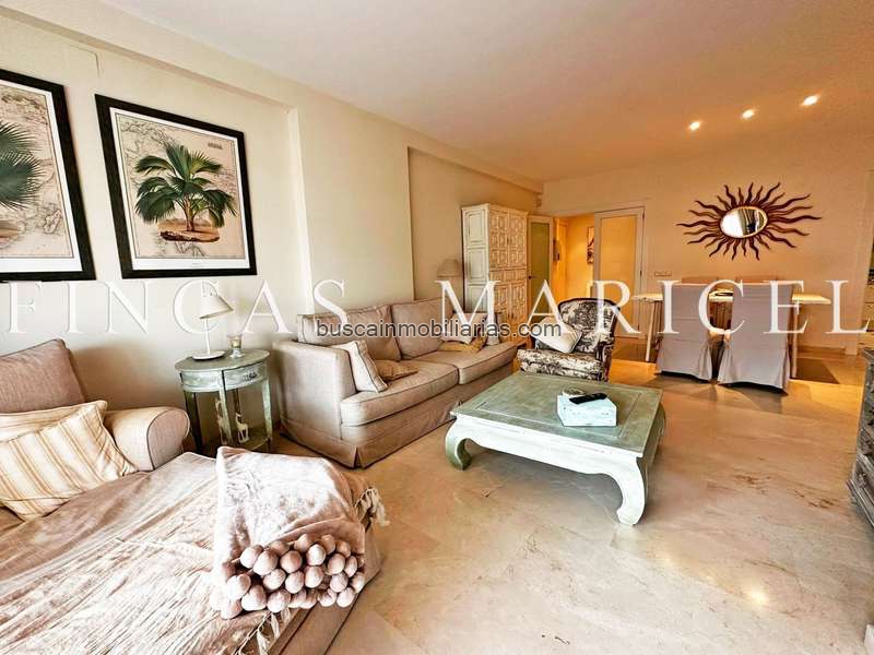 Salón-comedor con salida a una amplia terraza no acristalada, con vistas a la calle y lateral al mar .