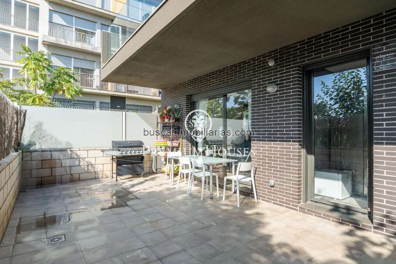 En el barrio de La Plana de Sitges encontramos a la venta esta planta baja esquinera. La vivienda es de construcción reciente y se encuentra en muy buen estado. Hay dos espacios exteriores de gran tamaño, uno al que accedemos a través del salón comedor y otro en la zona de noche.
