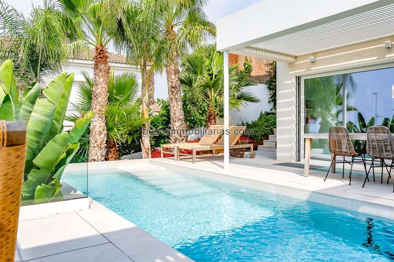 El exterior alberga un jardín privado con piscina, cuyo mantenimiento está incluido en el precio.