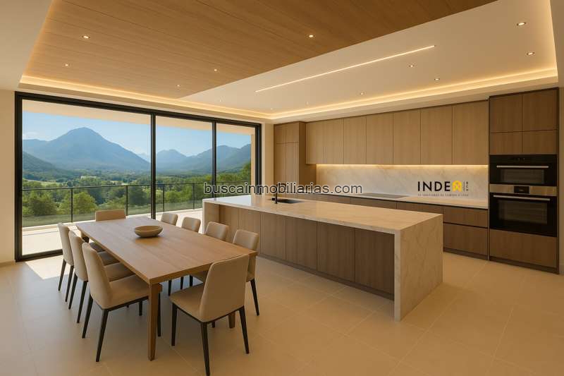 ️ Primera planta: espacio abierto de salón-comedor-cocina con salida a una gran terraza-mirador, despensa, baño completo y 1 dormitorio.