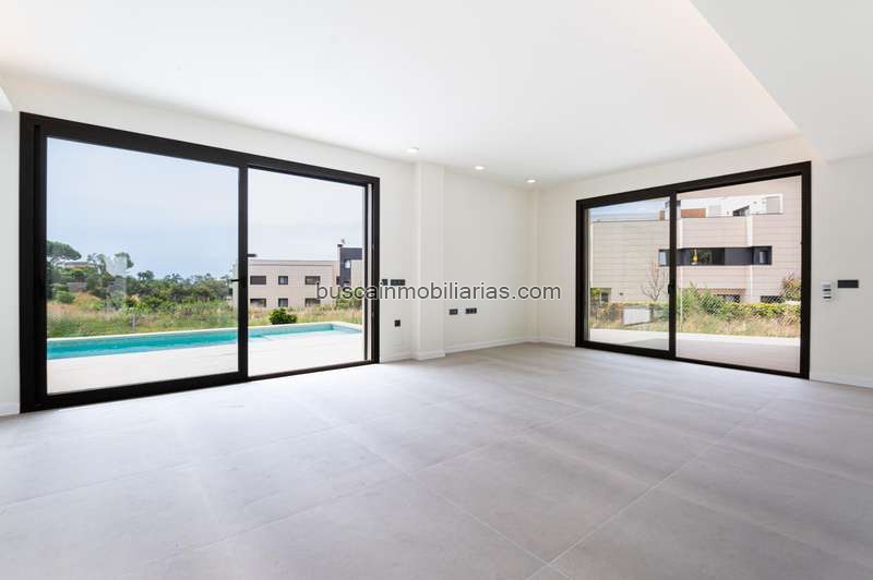 En la planta principal encontramos un elegante y amplio salón-comedor, con grandes ventanales que aportan abundante luz natural y permiten el acceso directo al jardín privado con piscina, un espacio pensado para el descanso y el disfrute al aire libre en un ambiente íntimo y cuidado.
