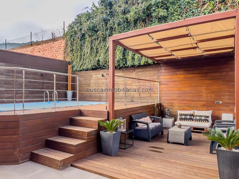 --♂️ El jardín se convierte en uno de los grandes protagonistas de la vivienda. Junto a la piscina climatizada, encontramos una zona chill out equipada con pérgola, ideal para relajarse, tomar el sol o disfrutar de veladas al aire libre.
