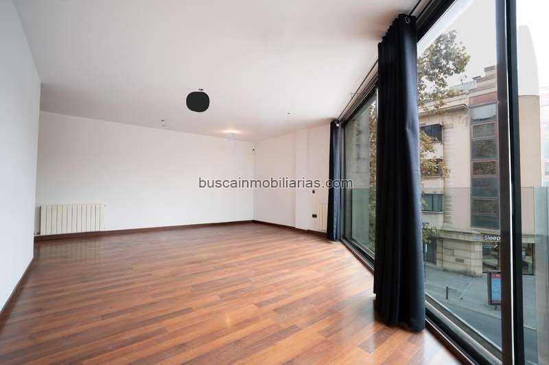 El impresionante ventanal orientado a la Rambla llena el salón de luz natural durante todo el día, creando un ambiente cálido y acogedor con vistas privilegiadas.