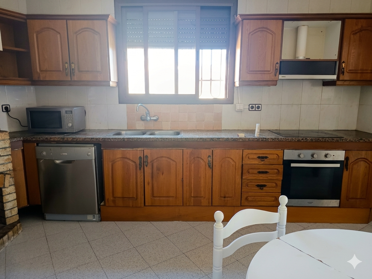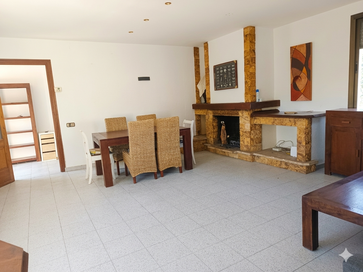 Zona de Día: Un acogedor y gran salón-comedor presidido por una chimenea de obra, el corazón del hogar para las reuniones familiares. La cocina tipo office es espaciosa con una chimenea de obra y lavadero/despensa, ideal para desayunos en familia y con acceso directo a las zonas de convivencia.