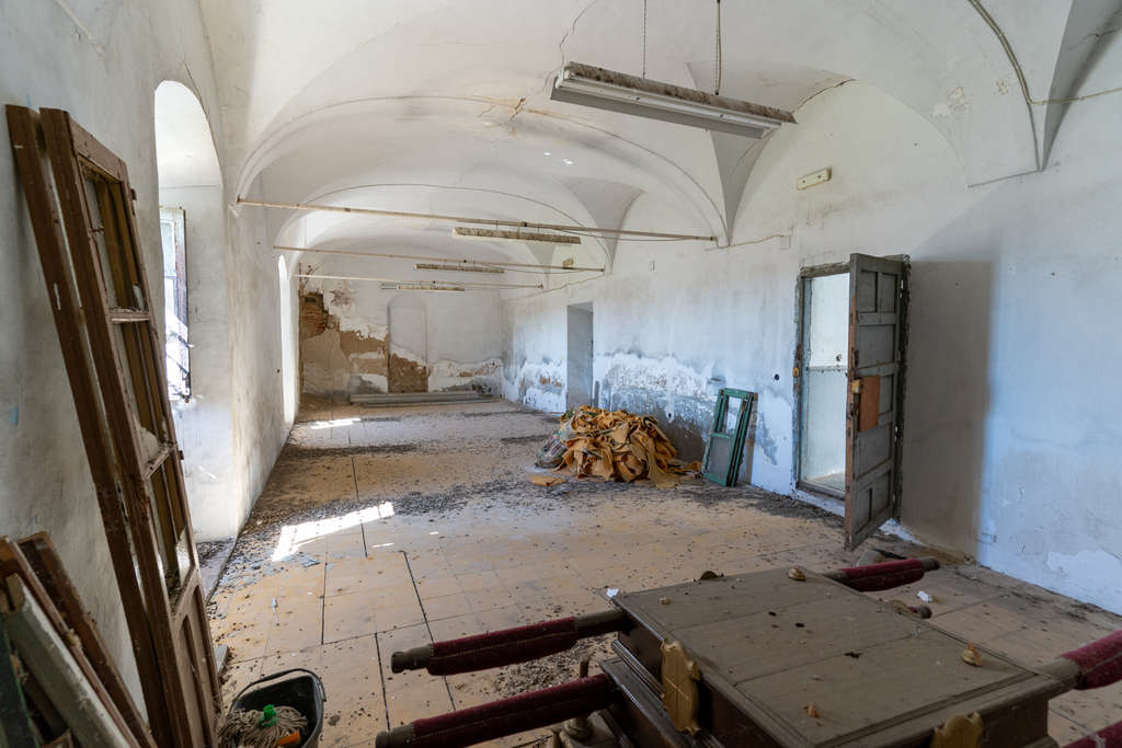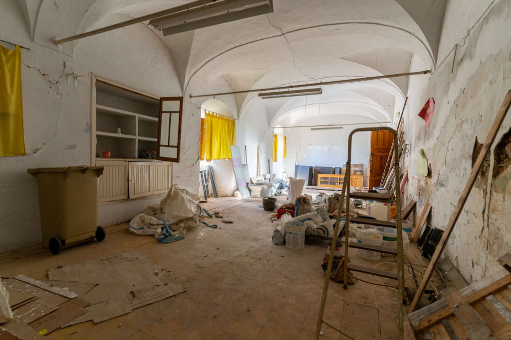 Las múltiples estancias se distribuyen en tres plantas que históricamente albergaban aulas, dormitorios, la librería abovedada, el comedor, la cocina y los sótanos. Cada espacio mantiene su personalidad única, invitando a imaginar nuevos usos donde la historia del lugar acompañe al presente.