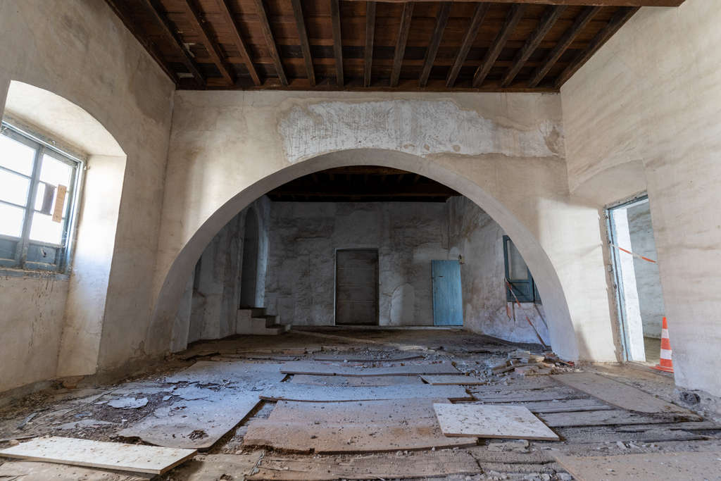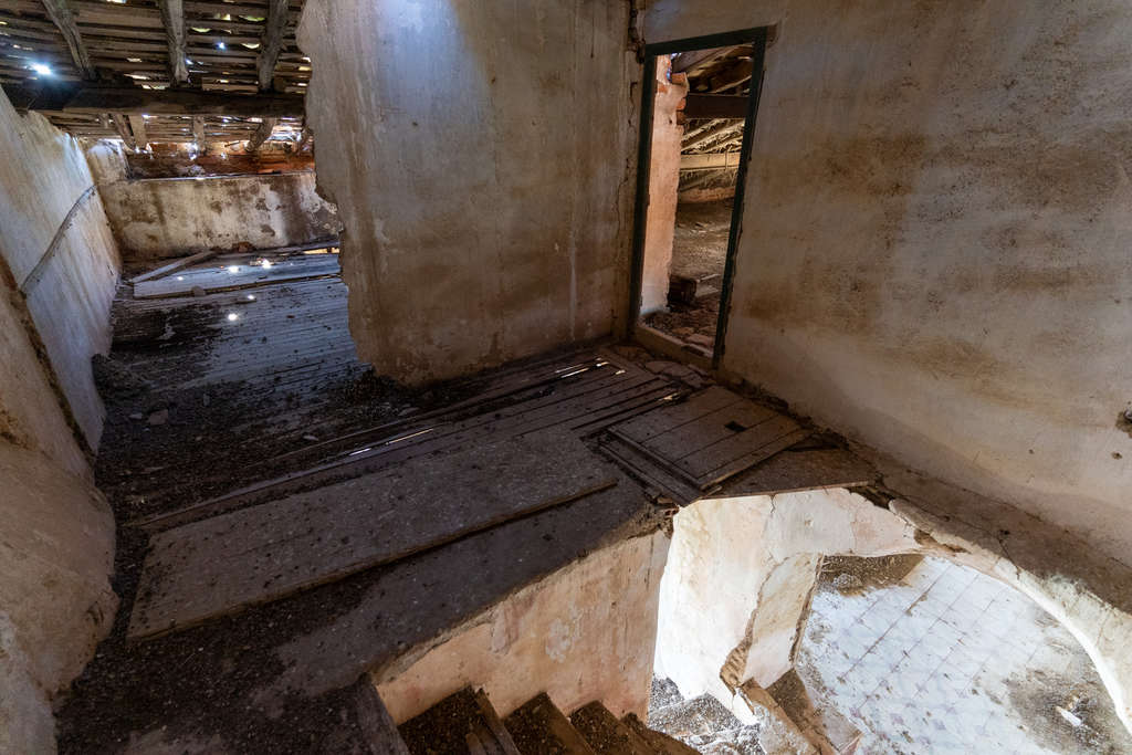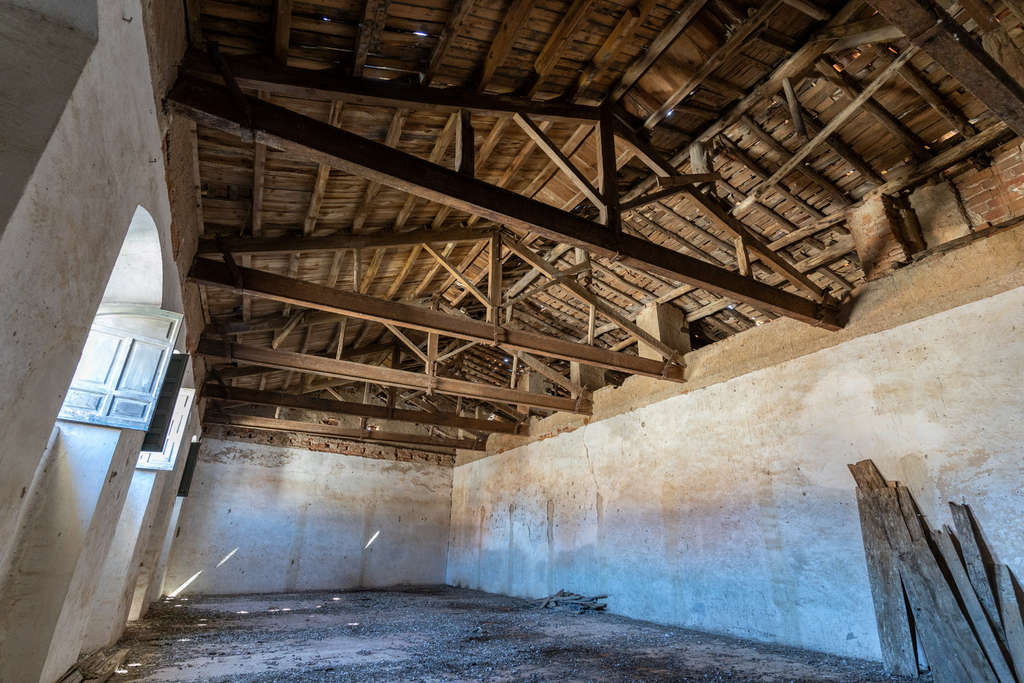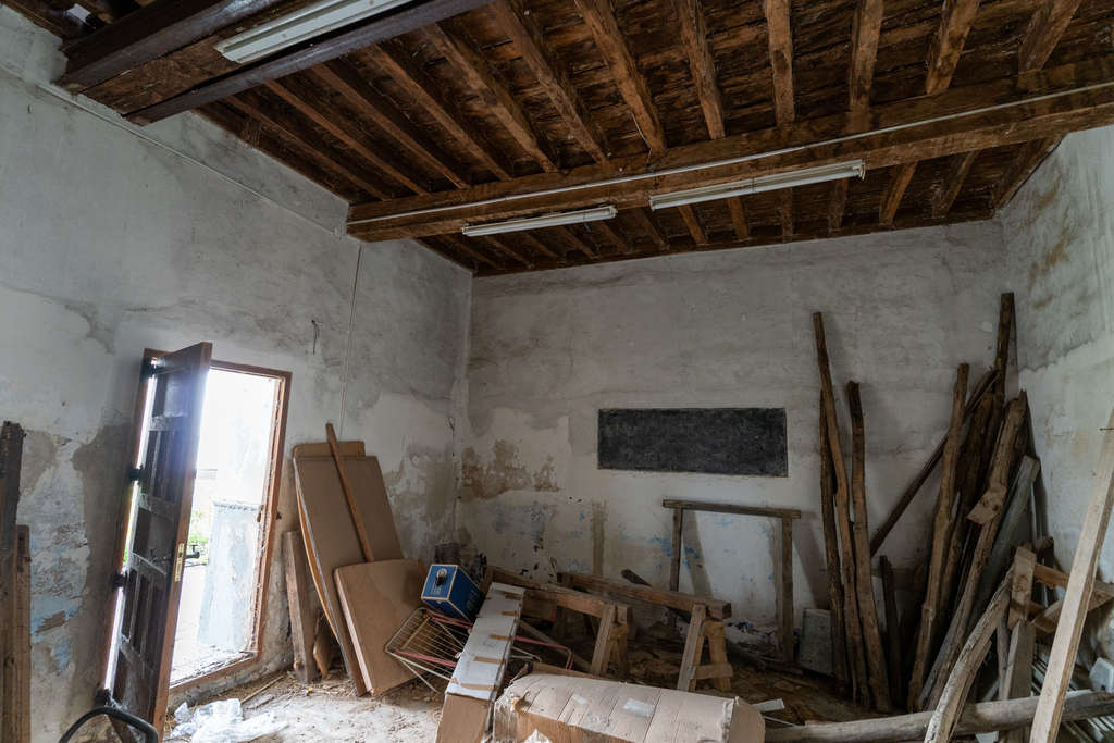 El edificio conserva elementos constructivos originales como muros encalados, ventanas con arcos de medio punto, carpintería de madera y techos con vigas vistas. Aunque requiere restauración integral, mantiene su estructura fundamental y ofrece un lienzo excepcional para proyectos que valoren la autenticidad de espacios cargados de memoria.