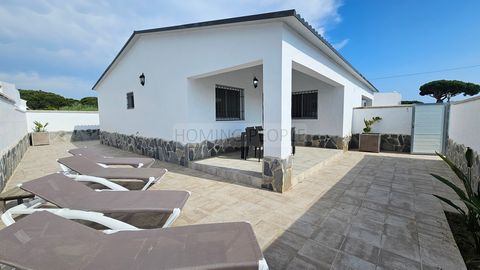 Casita de una sola planta de alzado de orientación suroeste con porche cubierto, zona de barbacoa y solárium, además de piscina (a compartir con una casa más), en una urbanización rodeada de pinares a minutos a pie de playa y comercios.