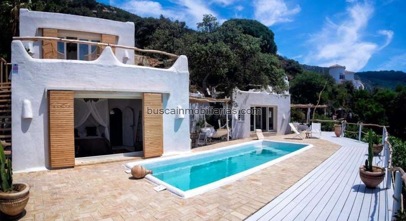 Original chalet en Zahara de los Atunes. Frente a la playa de los Alemanes. Con unas vistas excepcionales, encontramos una casa singular, distinta, con un estilo propio, con un aire fresco pero manteniendo las raíces del lugar. La construcción se realizó reformando una casa antigua y actualmente se distribuye en 4 dormitorios con 3 baños y salón-cocina. Dispone de una piscina que garantiza el relax total disfrutando del paisaje único de la montaña y el mar.