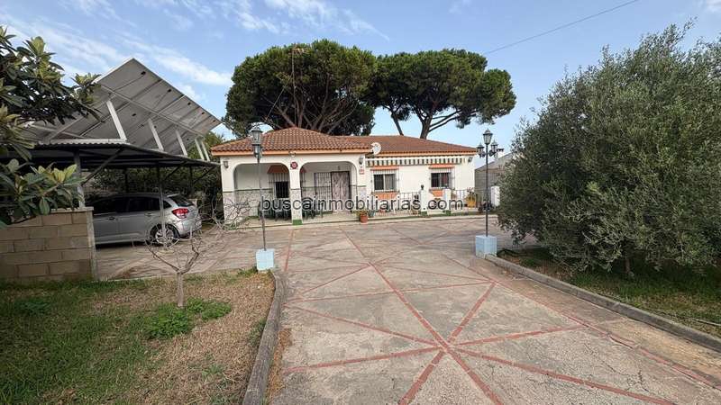Chalet en Chiclana situado en la zona de La rana verde, a menos de 5 Km de la playa de La Barrosa, esta propiedad ofrece un fácil acceso a supermercados, farmacias, centro de salud y diversas zonas recreativas, dispone de una superficie construida de 104 m2 sobre una parcela de 1.046 m2. Se distribuye en un acogedor porche delantero, salón comedor con chimenea ideal para disfrutar momentos agradables, 3 dormitorios con armarios empotrados, baño con placa de ducha y cocina con acceso directamente al jardín trasero donde nos encontramos con la piscina, un amplio trastero, cuarto de herramientas, barbacoa y aseo exterior .En la parte delantera de la parcela dispone de aparcamiento techado para 2 coches sobre el cual hay instaladas placas solares para mayor eficiencia energética. (Gastos de notaría, registro, impuestos y honorarios de la agencia, no incluidos en el precio).
