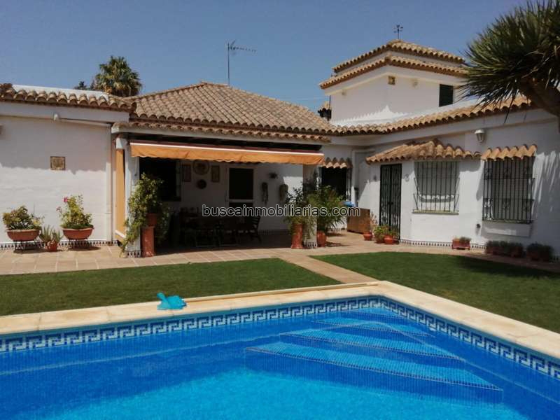 Chalet en Chiclana situado en la zona del Almendral, a 6 Km de la playa La Barrosa y a tan solo 1 Km aprox. del centro de la ciudad, cercano a supermercados, farmacia, restaurantes, parada de autobús…, con una superficie construida de 283 m2 cuenta con porche de entrada, 6 dormitorios perfectos para acomodar a toda la familia e invitados, 2 baños, salón con chimenea para los días fríos de inviernos y amplia cocina con zona de comedor, además dispone de un amplio garaje cerrado con acceso directo a la vivienda. En el exterior nos encontramos con jardín, piscina, zona de barbacoa y leñero. Parcela de 800 m2. (Gastos de notaría, registro, impuestos y honorarios de la agencia, no incluidos en el precio).