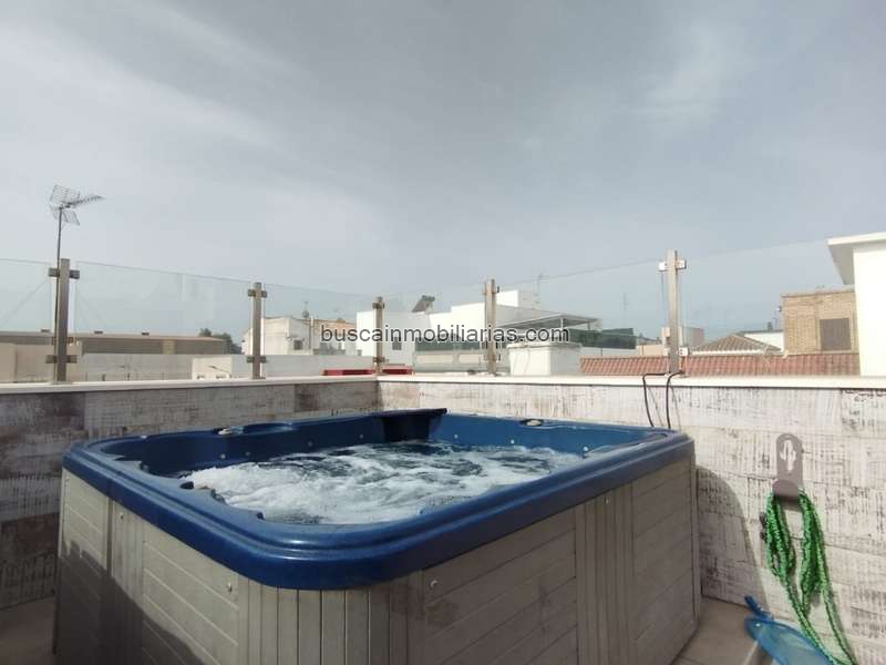 Saliendo, tenemos una terraza con sofás estilo Chill out, con zona barbacoa, toma de luz y agua, toma de TV, Jacuzzi.