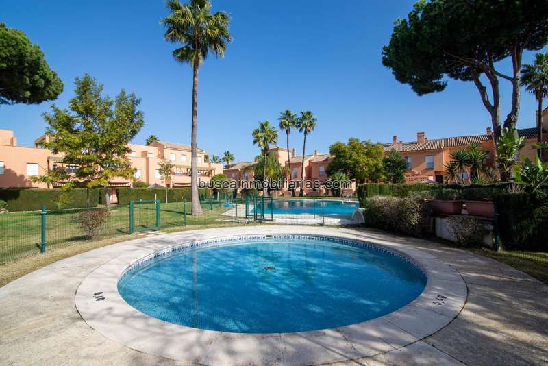 Apartamento en Chiclana situado en la zona del Novo Sancti Petri, residencial privado con piscina comunitaria, zonas verdes y plaza de aparcamiento, a 1,5 Km de la playa La Barrosa y cercano a centros comerciales, campos de golf e instalaciones deportivas. La vivienda se sitúa en planta baja, con sus 68 m2 construidos se distribuye en 2 dormitorios con armarios empotrados, baño, cocina y salón comedor con salida directa al porche con jardín de 55 m2.