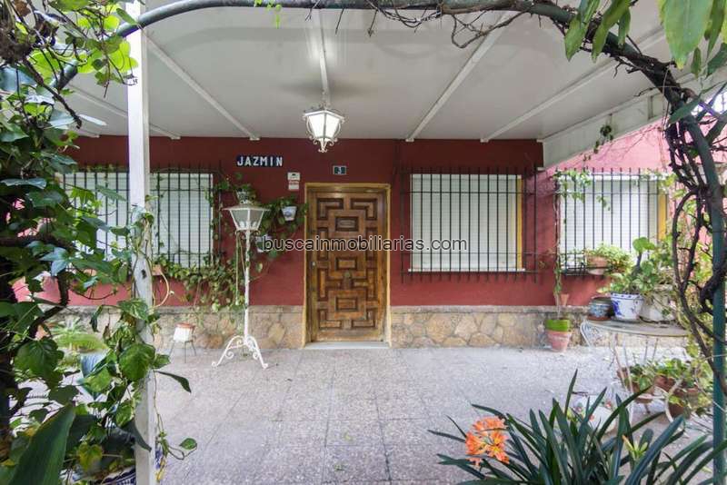 La vivienda está rodeada por jardín en todo su perímetro, aprovechando el espacio libre de la parcela tras la construcción. En la parte trasera se encuentra además una zona para aparcar dentro de la propiedad y un trastero-lavadero de aproximadamente 5 m2.