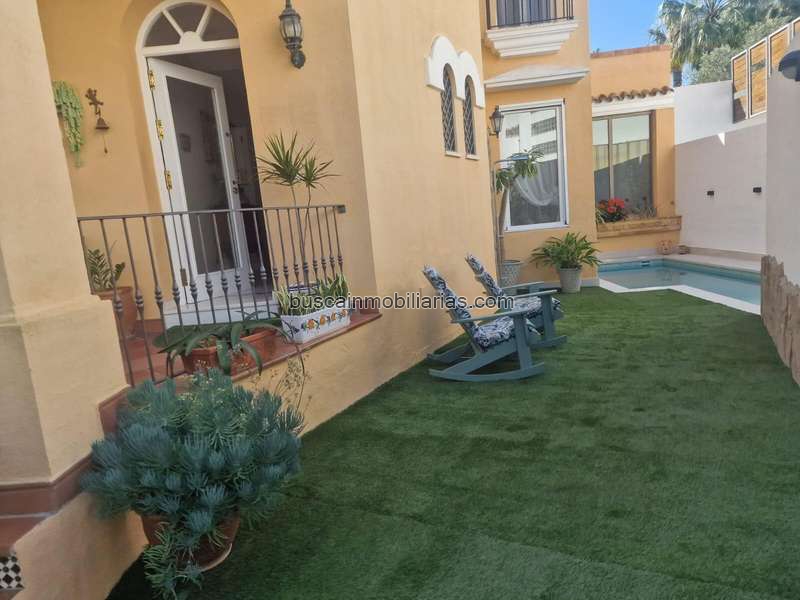 Se encuentra en parcela de 300 metros aproximadamente., de los cuales 230 m2 son de superficie construida. El exterior se distribuye en porche y pérgola habilitados para garaje con luces automáticas, en el que cabe un coche y una moto con puerta automática y peatonal con vídeo portero. La casa está rodeada de 50 metros de césped artificial con árboles frutales y espacio suficiente en el que encontramos una maravillosa y acogedora piscina en la que poder relajarnos y darnos ese baño tan apetitoso, una ducha para la piscina, un cuarto lavadero de 7m y otro porche trasero de 12m con suelo porcelánico.