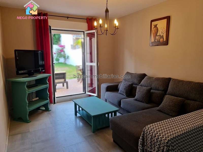 Spacious townhouse in a quiet area of Guadiaro. It consists of 2 floors. On the ground floor we have a toilet, large fully equipped kitchen, living room, living room with access to a terrace with a large garden and access stairs to the upper floor. The upper floor consists of a complete bathroom with a bathtub and a screen, two double bedrooms and a single bedroom. The house is in perfect condition. Marble floors. Located in a quiet area of Guadiaro, next to the football field and a few meters from the La Cañada golf club. Very close to schools, medical center and shops. 5 minutes from Sotogrande.