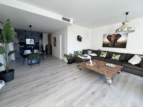 La amplia azotea ofrece vistas panorámicas al mar Mediterráneo, al campo de golf y a las zonas comunes. Los grandes ventanales con marcos de aluminio inundan la vivienda de luz natural, mientras que un sistema de aerotermia garantiza confort durante todo el año.
