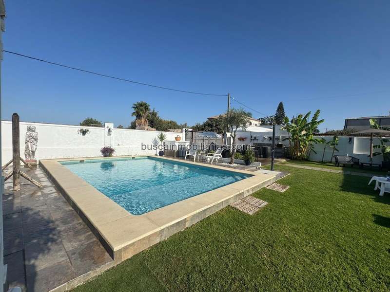 Estupenda y acogedora casa de campo con piscina privada, muy próxima al camino Sevilla . La casa está en una parcela rústica de unos 1.000 m2 vallada de los cuales 500 m2 ya están edificados e incluyen la vivienda , zonas ajardinadas con su piscina de unos 19 m2 para relajarse al aire libre y un porche cubierto con barbacoa de unos 23 m2 y zona de comedor exterior que te invitará a compartir comidas y buenos momentos con familia o amigos. , y los otros 500 m2 adicionales sin edificar, que te ofrecerá infinitas posibilidades.