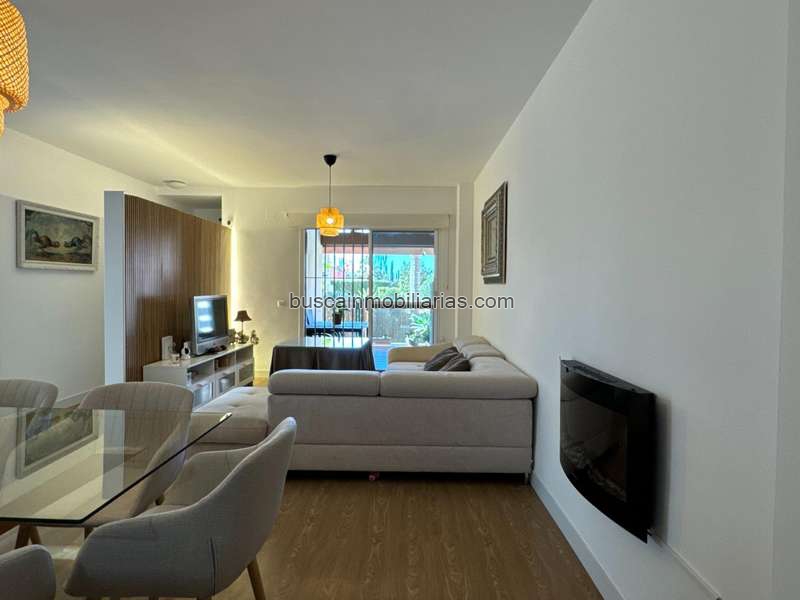 El salón, amplio y luminoso, comunica directamente con una terraza orientada hacia los jardines, un espacio perfecto para relajarte o disfrutar de una comida al aire libre. La cocina es independiente, está completamente equipada y destaca por su buen estado y sus mejoras. La vivienda ofrece 3 dormitorios, uno de ellos en suite, además de un segundo baño completo. Como extra muy práctico, cuenta con un pequeño patio lavadero independiente.