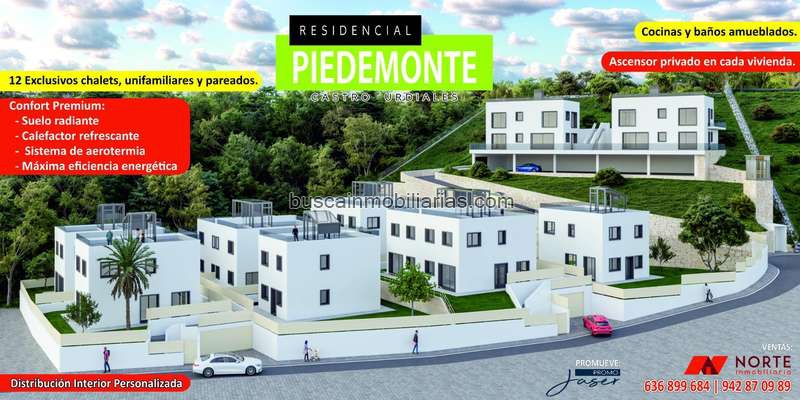 •Residencial Piedemonte se ubica en el corazón de monte cueto, un emplazamiento privilegiado, un lugar tranquilo en plena naturaleza y a un paso del centro urbano y la playa de Brazomar.
