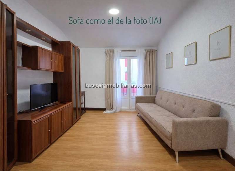 Se trata de una vivienda que consta actualmente de 1 dormitorio doble (se entrega con canapé y colchón de 135cm y cabecero nuevo), pero que cuenta con amplios espacios comunes: un salón con dos áreas, zona de televisión y otra multiusos según tus necesidades, con un balcón orientado al sur (se entregará con un sofá a estrenar como el de la foto), una zona de cocina-comedor actualizada y estupenda para hacer vida en común o también crear un rincón de trabajo, un baño exterior con ducha y un cuarto trastero.