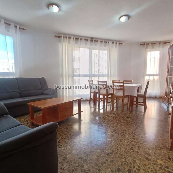 Piso en Castellón, zona Corte-inglés. Dispone de salón comedor, tres dormitorios, dos dobles y uno sencillo, dos baños, y una cocina equipada con salida a galería. Propiedad amueblada y con electrodomésticos. Emplazada en zona bien comunicada y con todos los servicios a su alcance. Orientación noroeste, cerámico, carpintería exterior de aluminio/climalit, armarios empotrados.