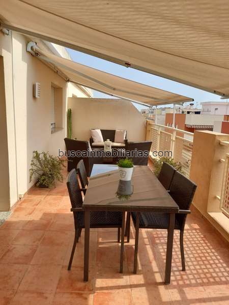 La gran terraza ofrece vistas al mar idealmente orientadas hacia el este, perfecta para relajarse; además se beneficia de acceso directo a una piscina comunitaria refrescante durante los cálidos días estivales.