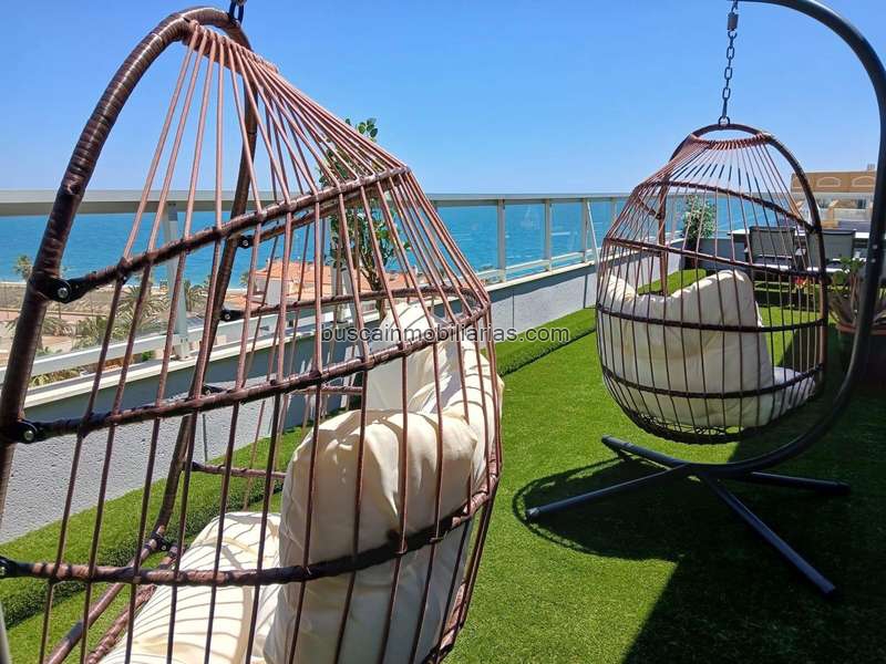 Acogedor Atico con piscina comunitaria y parking y con vistas al mar en alquiler para todo el año. Todo exterior. Ascensor. Bomba frío - calor en todas las estancias. Salón con salida a espaciosa terraza, cocina independiente equipada y con lavaplatos, dos habitaciones dobles (la principal con salida a terraza), un baño y parking. Bonito mobiliario de terraza.