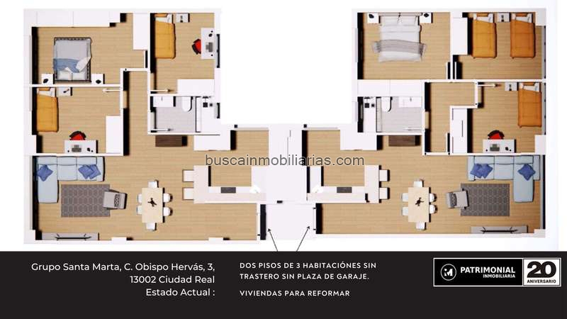 En la comunidad " Santa Marta " en el centro de ciudad real. Vendemos estas dos viviendas luminosas de tres dormitorios pendiente de ser reformadas para vivir o alquilar en rentabilidad.