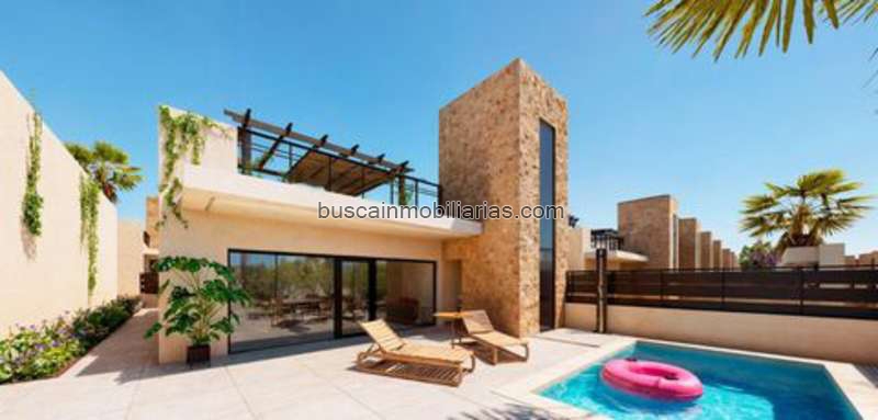 Residencial de obra nueva de villas y adosados en en Fuente Álamo, Murcia. Esta ubicación ofrece un entorno natural excepcional, alejado del bullicio de las grandes ciudades y de la presión turística de la costa. Además, estamos comprometidos a trabajar desde una perspectiva de desarrollo sostenible, minimizando nuestro impacto medioambiental y maximizando la integración con la comunidad local. Aquí sus sueños de un estilo de vida tranquilo y sostenible se hacen realidad. Imagine despertarse cada mañana en un entorno natural impresionante, rodeado de paisajes serenos y de la belleza única de la campiña murciana. Esta promoción prioriza la eficiencia energética, el uso de materiales respetuosos con el medio ambiente y la integración armoniosa con el entorno rural. Desde el diseño de la propiedad hasta la planificación del desarrollo para reducir nuestra huella de carbono y promover prácticas responsables en todas las operaciones. Instalación completa de aire acondicionado por conductos, frío / calor. Sistema de video portero. Puerta de acceso de seguridad lacada en color, con cerradura y herrajes de seguridad antivandálicos. Armarios con maletero, forrados interiormente, lacados en blanco. Muebles de Cocina con electrodomésticos incluidos Agua caliente por aerotermia. Persianas eléctricas. Pérgolas en solariums. Piscina privada de 2.5x4.5m con iluminación nocturna sumergida y depuración con sistema de cloración salina. Preinstalación para cocina exterior/jacuzzi en solárium Fuente Álamo de Murcia es una localidad y municipio de la Región de Murcia, al sur de España. Está situada a 22 km al noroeste de Cartagena y a 35 km al suroeste de Murcia. La ciudad se encuentra en la cuenca del Mar Menor, rodeada por las sierras de Algarrobo, Los Gómez, Los Victorias y Carrascoy. El agua de estas montañas fluye hacia abajo en la Rambla de Fuente Álamo y luego en el Mar Menor. Fuente Álamo se encuentra a 30 minutos del aeropuerto de Murcia - Corvera. Tiendas más cercanas a 6km.