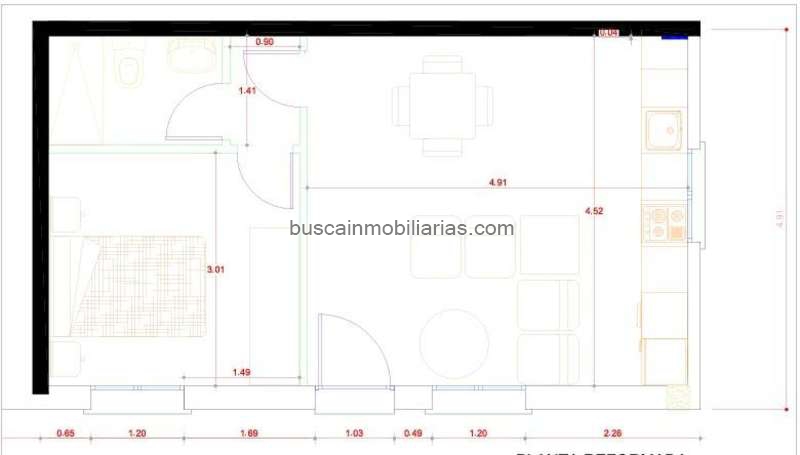 La vivienda cuenta con una distribución abierta que integra un amplio salón y una cocina americana totalmente amueblada y equipada con electrodomésticos. La habitación principal está diseñada para ofrecer un ambiente acogedor y funcional, ideal para el descanso, mientras que el baño completo dispone de una moderna placa de ducha que aporta un espacio práctico y elegante.