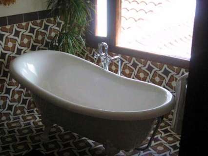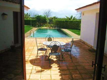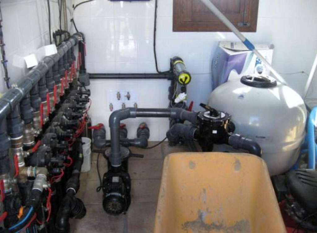 REFERENCIA: VB5F5 Chalet de lujo en venta en La Carlota. Completamente amueblado. Excelentes calidades. Puerta de seguridad, cámara de video vigilancia en todo el recinto, alarma perimetral de infrarrojos y alarma conectada con central. Piscina con mecanismo para producir olas, solárium, barbacoa, pozo, leñero, estanque y garaje para dos vehículos con puerta automatizada. Sistema de riego. Salón con chimenea y acceso a la piscina, cocina completa. Dormitorio principal en planta alta, con vistas, vestidor y baño de lujo. Suelo radiante en dormitorio, pasillo y baños principales. La planta sótano dispone de bodega, spa de suelo de pizarra natural, gimnasio y sala de conciertos y cine.