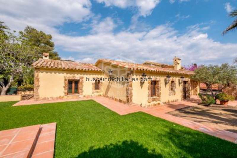 La villa tiene 400 m2 construidas y dispone de 4 dormitorios, 1 de ellos es una suite, 3 baños, un amplio salón con chimenea, una cocina equipada y un comedor.