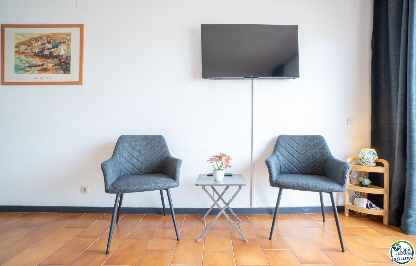 En venta, precioso apartamento muy luminoso y totalmente exterior (travesero), situado en la 3ª planta de una residencia con piscinas y jardín comunitario, en pleno centro de Empuriabrava y a pocos pasos del mar.